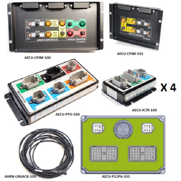 AER CHASS 4 JACK W/SJ SYS kit consists of several controllers and wire harness. Componets included in the kit are described as follows.