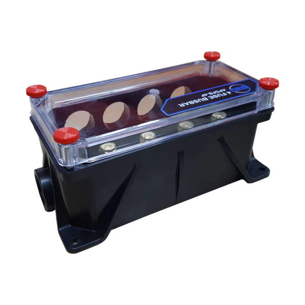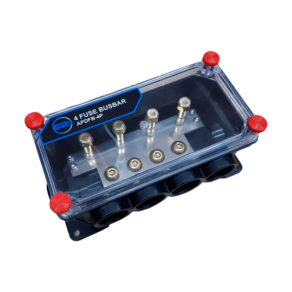 The PowerPlex Sealed 4 Fuse Power distribution box is an up to 300 amp fully sealed fuse box with applications in the automotive, marine and heavy equipment industries. APDFB-4P has the functionality to "Daisy Chain" itself to provide multiple fuse nodes throughout your system/Chassis without the need to run multiple large gauge supply cables.